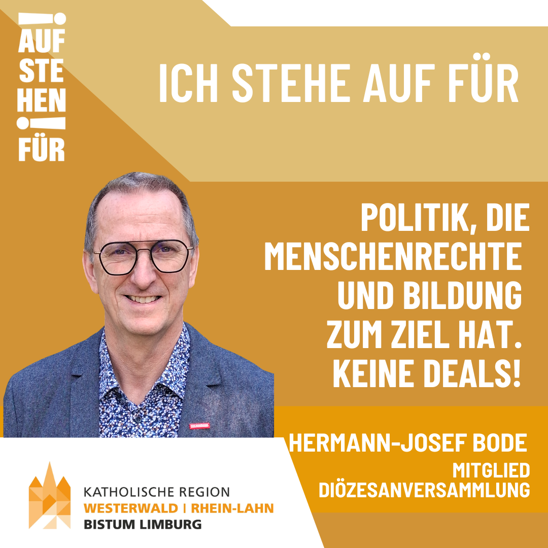 Mit der Kampagne "Aufstehen für" setzen die Kirchen in Rheinland-Pfalz und Hessen vor den anstehenden Wahlen ein deutliches Zeichen. Unter: Region Westerwald Rhein-Lahn: Aufstehen für finden sich weitere Informationen zu dieser Kampagne.